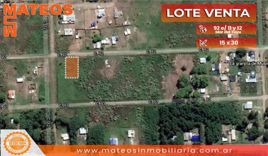 LOTE BALDÍO MAR DEL TUYU calle abierta buen acceso a 2 cuadras de la avenida 94 ingreso a mar del tuyu Medidas: 15 x 30 Orientación: NORTE 200 METROS DEL ASFALTO 200 METROS DEL ACCESO DE MAR DEL TUYU