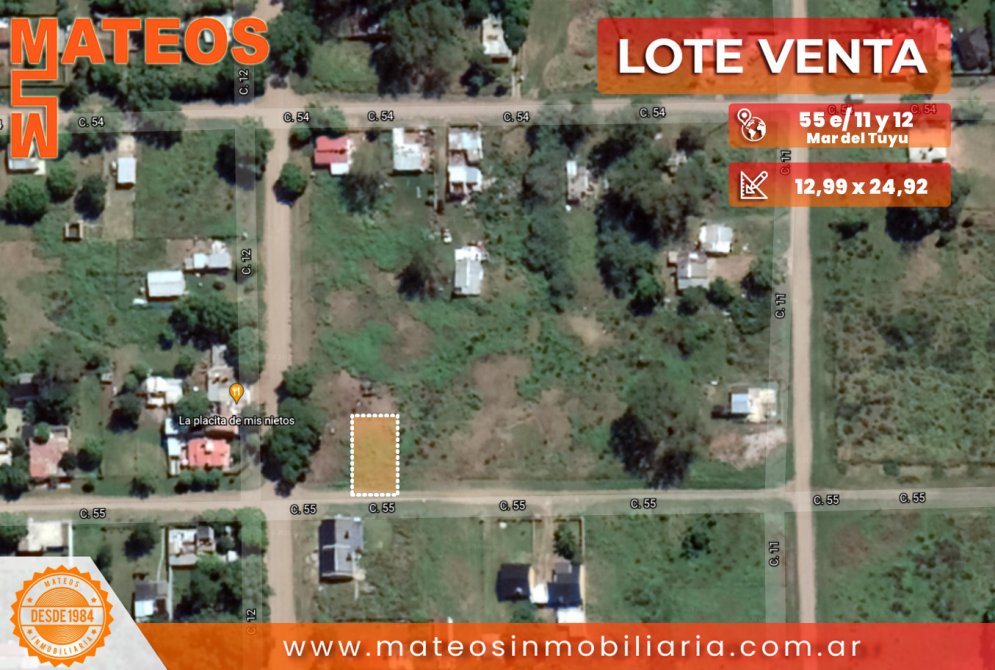 LOTE BALDIO A 300 METROS DEL ASFALTO Medidas: 12,99 x 24,92 A 300 METROS DEL ASFALTO A 300 METROS DE AV. 58 (ACCESO DE MAR DEL TUYU) Con DH