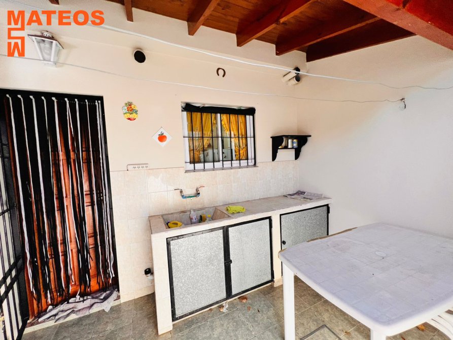 Patio semicubierto con parrilla