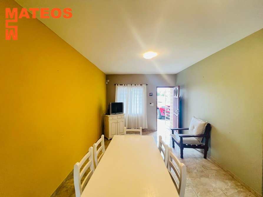 Distribuido en una sola planta para mayor comodidad. Al ingresar, se accede a un espacio que combina el comedor y la cocina. A ambos lados de este espacio central se encuentran los dos dormitorios, proporcionando privacidad y tranquilidad a sus habitantes. En el medio de estos, se sitúa el baño. En la parte trasera, se dispone un práctico lavadero techado y un encantador patio con una parrilla. Además, en el frente de la propiedad, se cuenta con un amplio espacio para estacionar un auto.